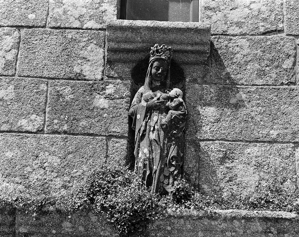 Statue (d'applique, demi-nature) : Vierge à l'Enfant allaitant, église paroissiale Saint-Colomban (Plougoulm),