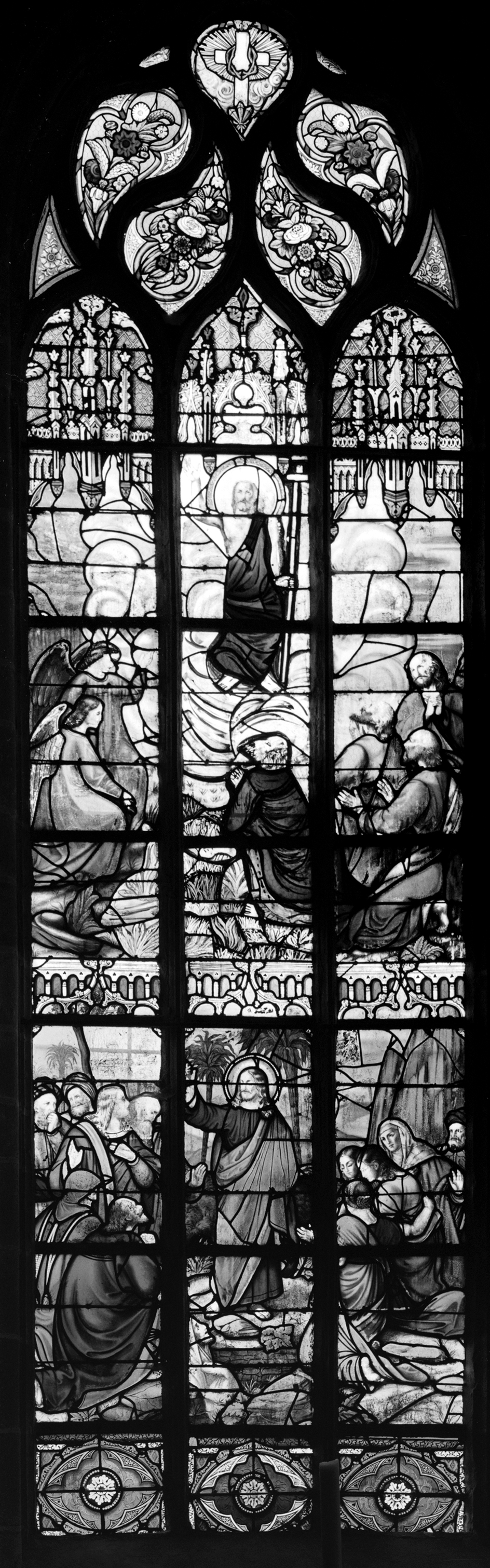 Verrière de la baie 1 : Christ enseignant, Ascension (état en 1987)Immatriculation