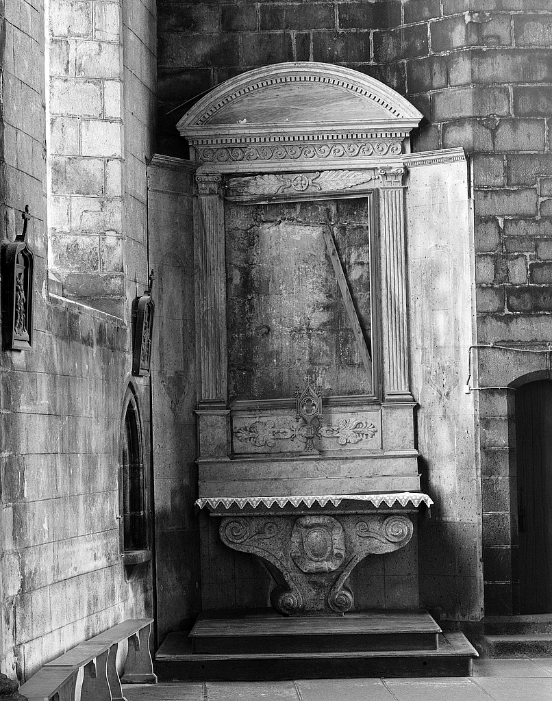 Autel, retable, gradins d'autel (2) (autel secondaire, autel table, retable architecturé) : de l'ange gardien, chapelle Notre-Dame-du-Kreisker (Saint-Pol-de-Léon),