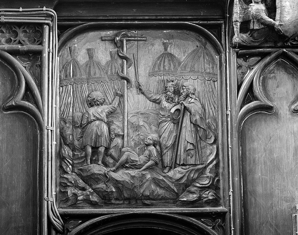 Bas-relief, Moïse et le serpent d'AirainImmatriculation