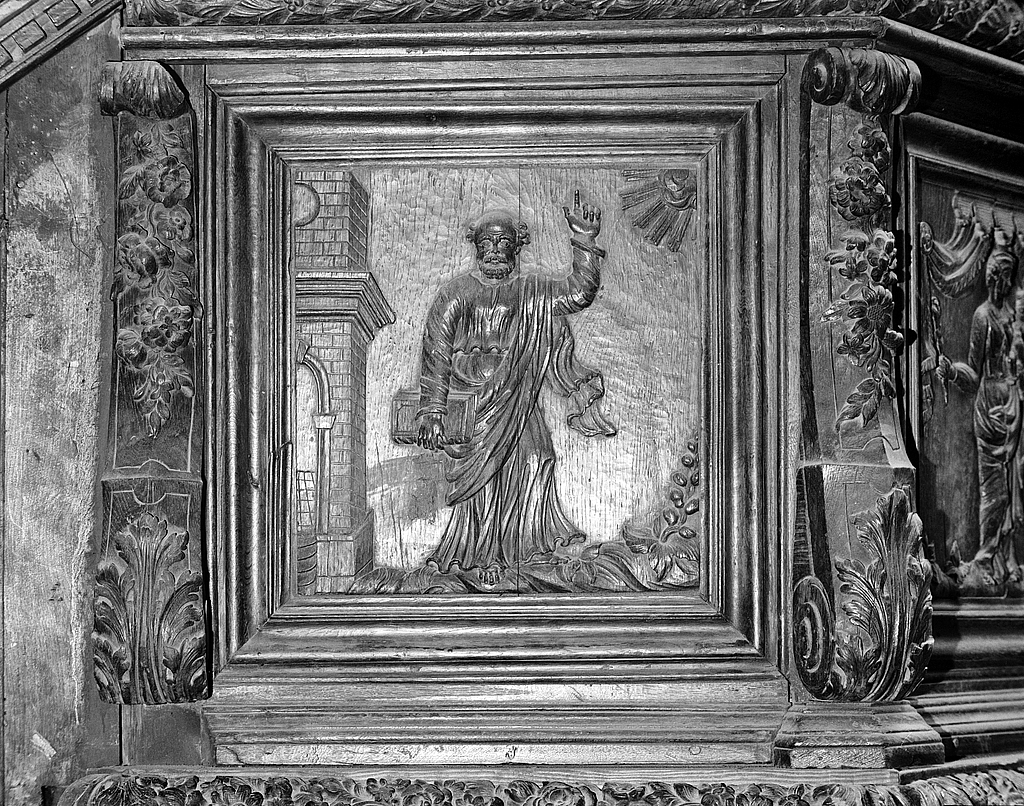 Cuve, détail d'un panneau, saint Paul apôtre.Immatriculation