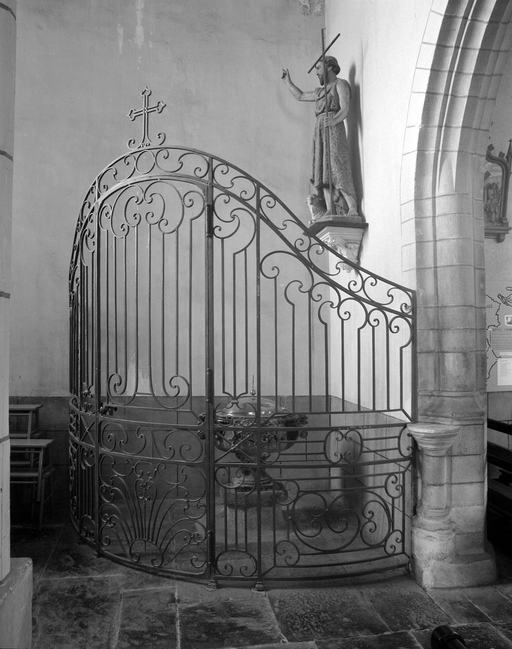 Fonts baptismaux, clôture des fonts baptismaux, église paroissiale Saint-Martin (Balazé),