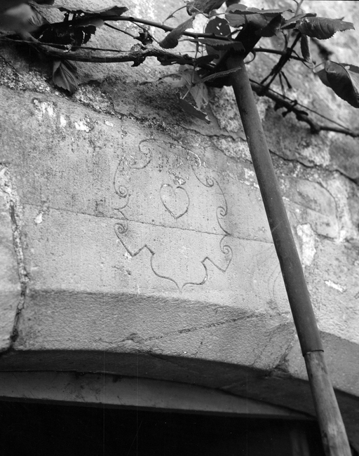 Elévation nord : détail du linteau de la porte.Immatriculation
