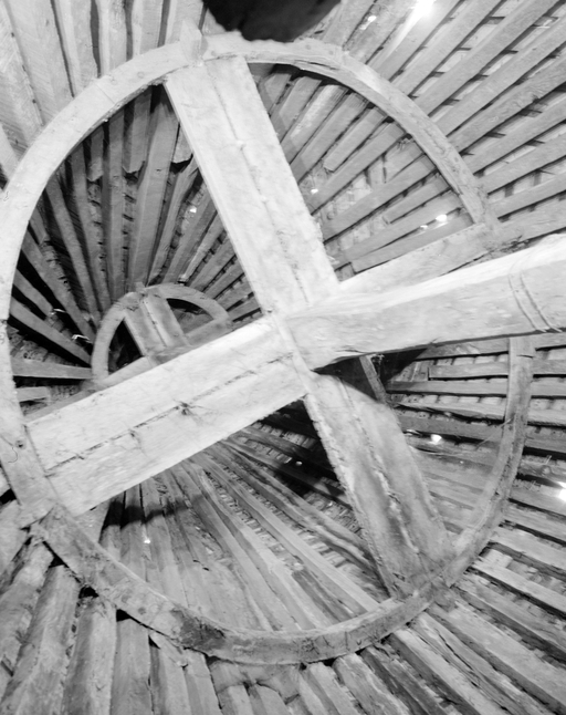 La Maserie - Intérieur de la tour, charpente, vue générale.Immatriculation