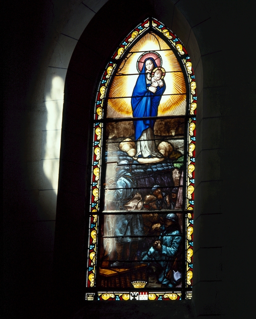 Verrière n°15, Vierge à l'Enfant apparaissant aux poilus dans la tranchée : vue générale.Immatriculation