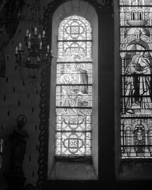 Verrières (6) (verrières à personnages) (baies 9 à 14), prieuré de bénédictins, église paroissiale Notre-Dame-du-Roc (Montautour),
