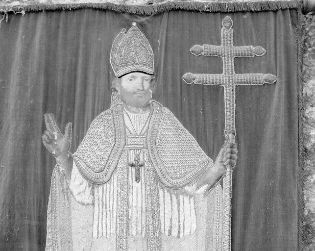 Bannière de procession : Saint Martin, Christ en croix, église paroissiale Saint-Ouen (La Chapelle-Erbrée),