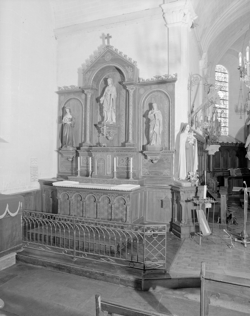 Autels (2), tabernacles (2), retables (2) (autel secondaire, retable à arcature), de la Vierge, du Sacré Coeur, style néo-gothique, église paroissiale Saint-Ouen (La Chapelle-Erbrée),