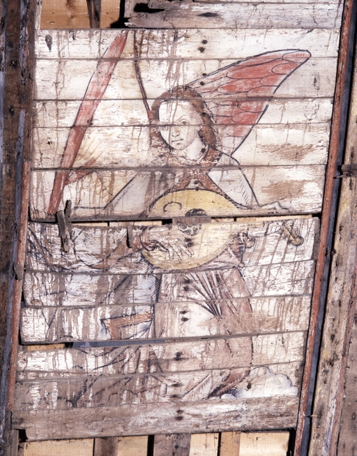 Peintures (8) : vie de sainte Catherine, anges, saint Pierre, saint Jean, chapelle Notre-Dame-de-Carmes (Neulliac),