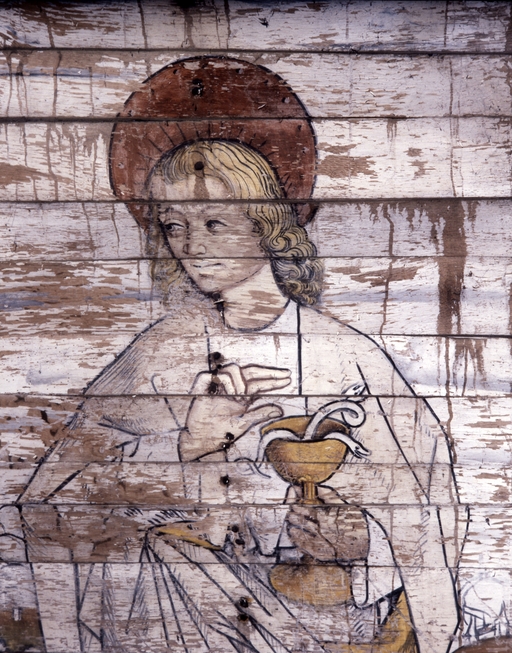 Peintures (8) : vie de sainte Catherine, anges, saint Pierre, saint Jean, chapelle Notre-Dame-de-Carmes (Neulliac),