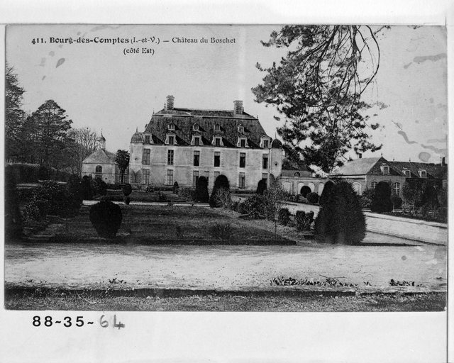 Fonds Lagrée - Carte postale ancienne - 411. Bourg-des-Comptes (I.-&-V.) - Château du Boschet, côté est.Immatriculation