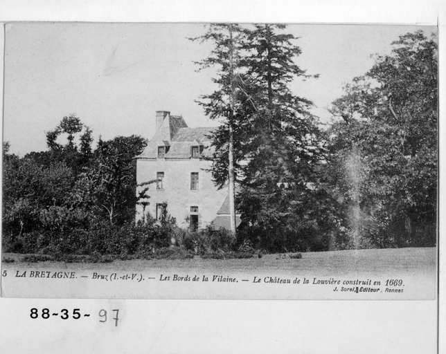 Fonds Lagrée - Carte postale ancienne - 5 - La Bretagne, Bruz - Les Bords de la Vilaine - Le Château de la Louvière.Immatriculation