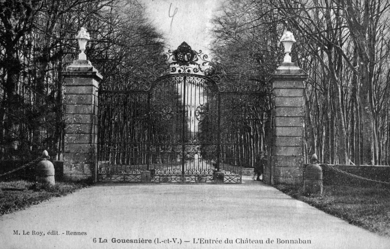 Fonds Lagrée - Carte postale ancienne : 6 - LA GOUESNIERE (I.-et-V.) - Entrée du Château de Bonaban.Immatriculation