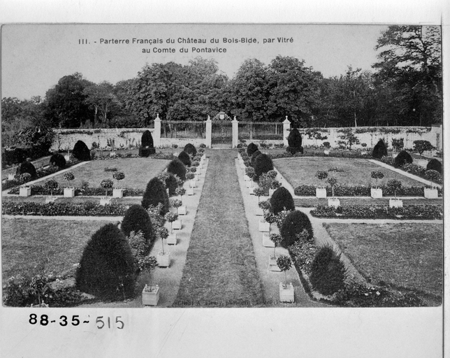 Fonds Lagrée - Carte postale ancienne : 111 - Parterre français du château du Bois-Bide par Vitré.