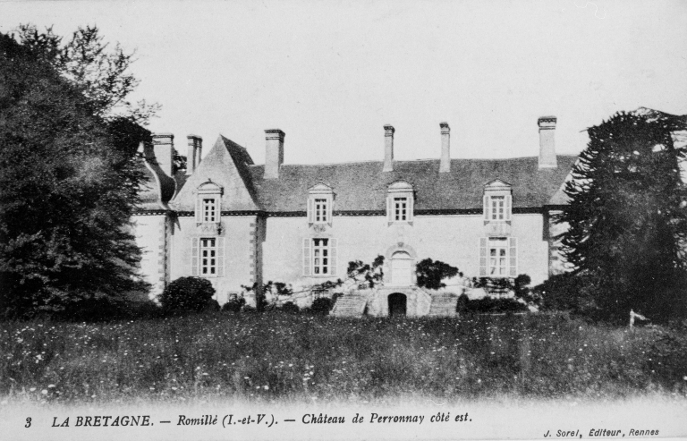 Fonds Lagrée - Carte postale ancienne. 3 - La Bretagne - Romillé (I.-et-V.) - Château de Perronnay, côté est.Immatriculation
