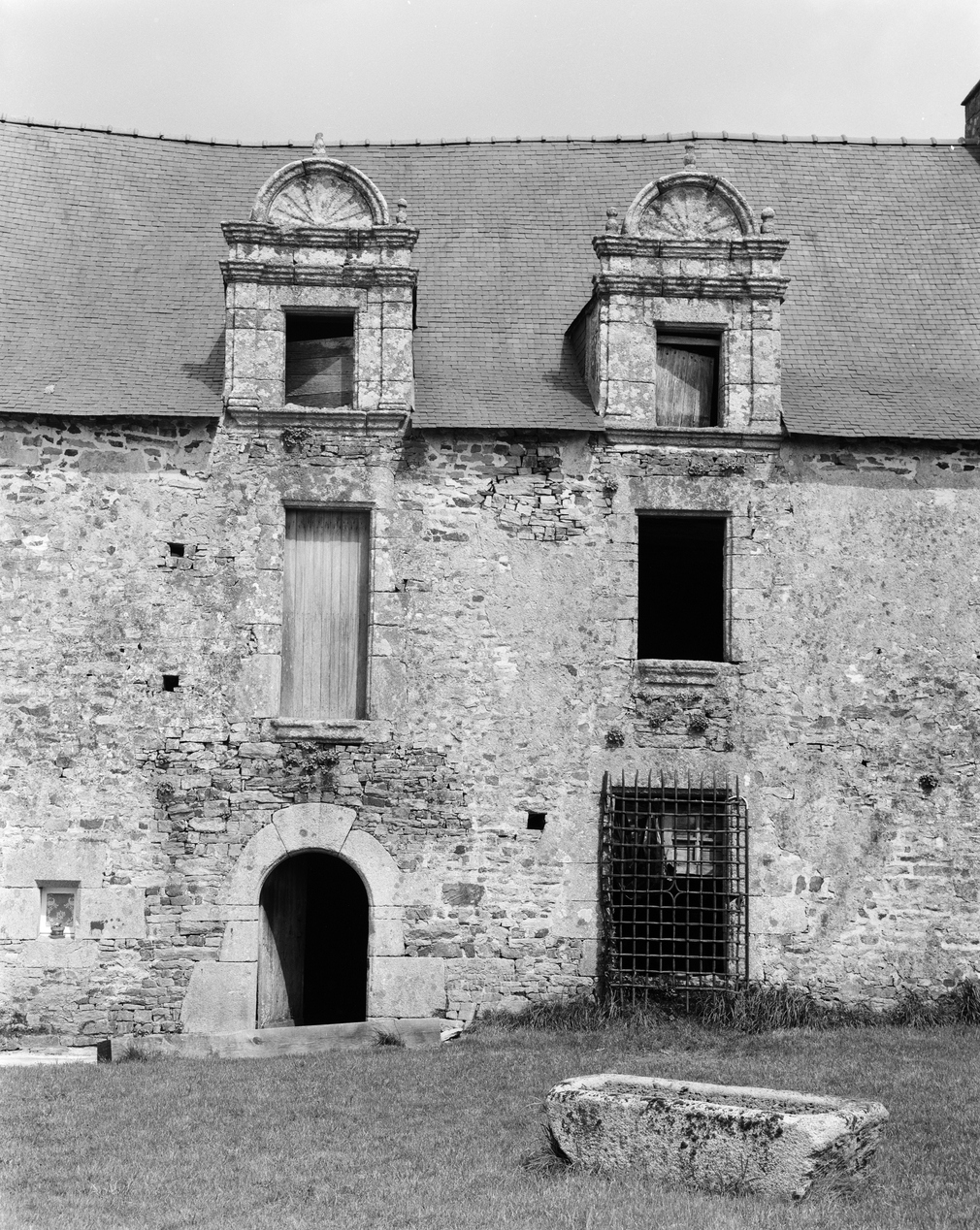 Manoir, élévation sud du logis, détail partie centrale.Immatriculation