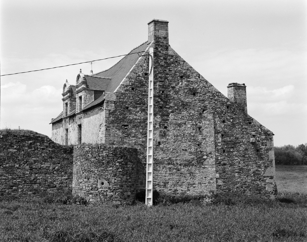 Manoir, pignon est, enclos et tour de défense.Immatriculation