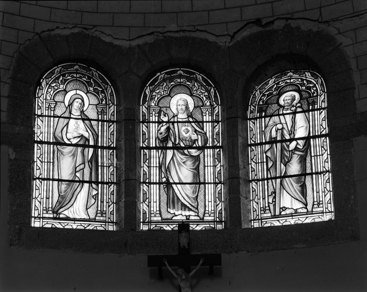 Verrière (3, verrière figurée) : sainte famille (baies 0,1,2), église paroissiale Saint-Servais (La Trinité-Surzur),