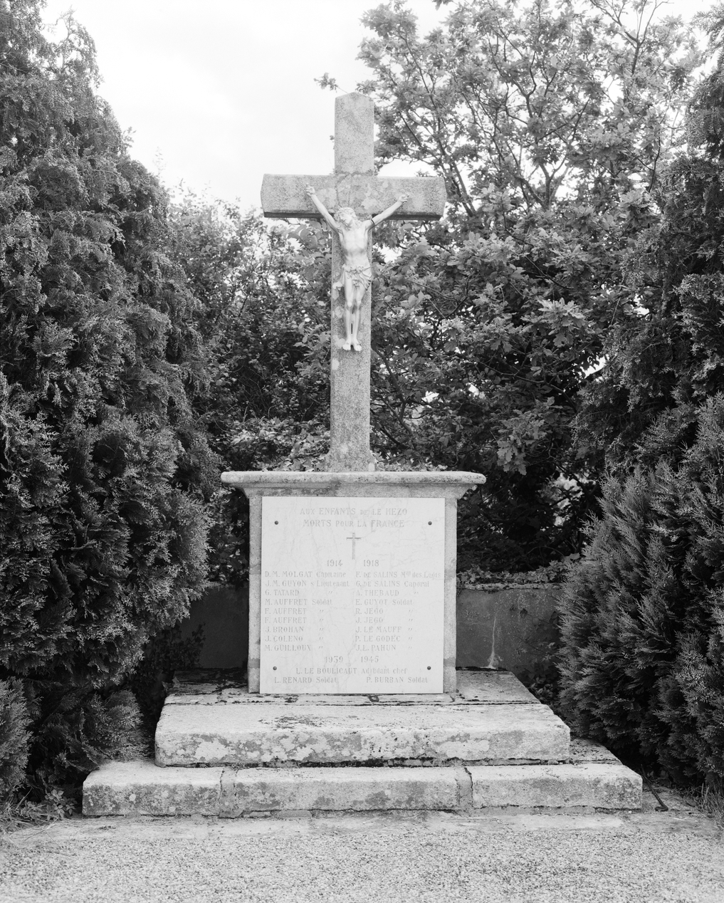 LE HÉZO, sud du bourg, cimetière, croix, monument aux Morts, vue générale ouest.Immatriculation