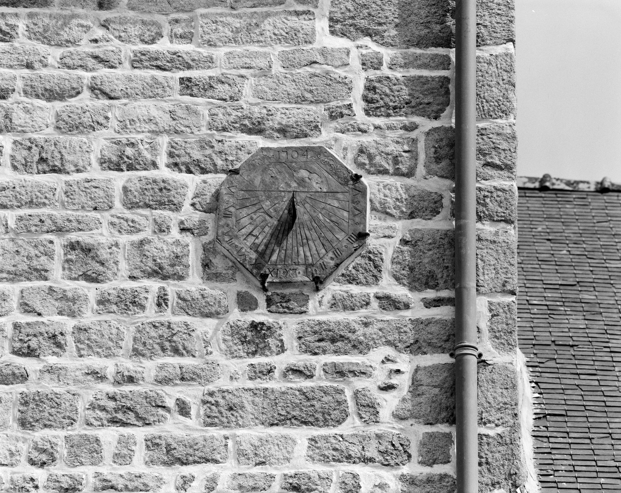 Elévation sud, cadran solaire.Immatriculation