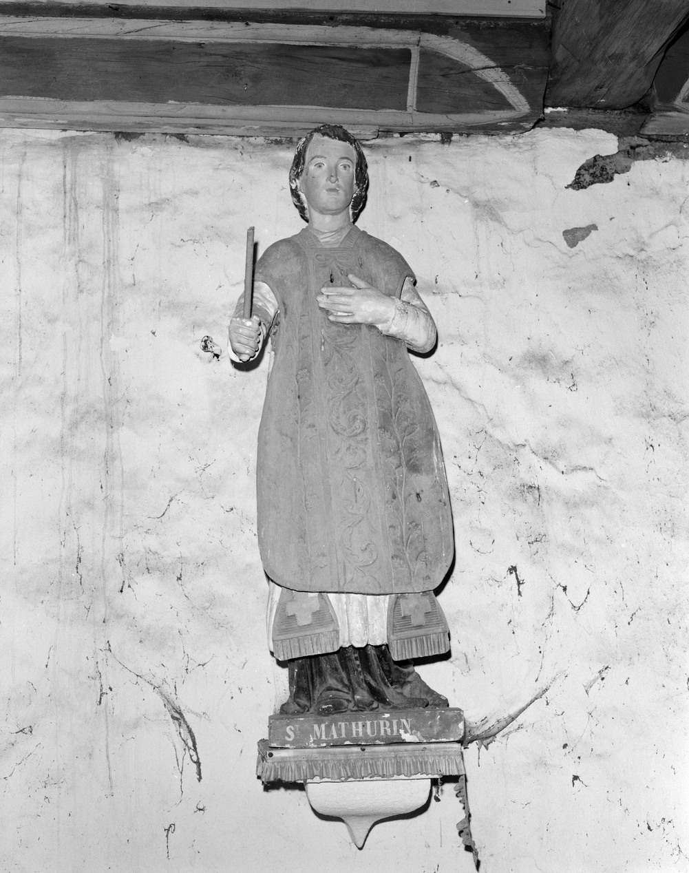 Ensemble de deux statues, statue de saint Mathurin, vue générale.Immatriculation