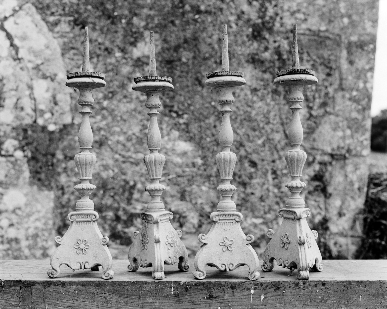 Ensemble de quatre chandeliers d'autel, vue générale.Immatriculation