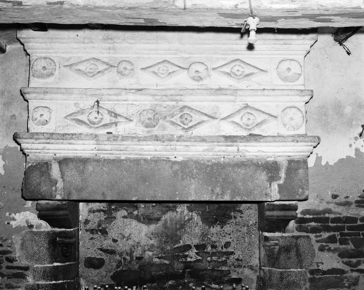 Manoir, rez-de-chaussée, mur nord, cheminée.Immatriculation