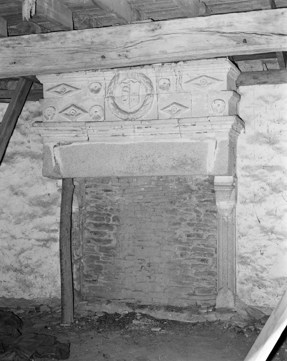 Manoir, étage, mur nord, cheminée.Immatriculation