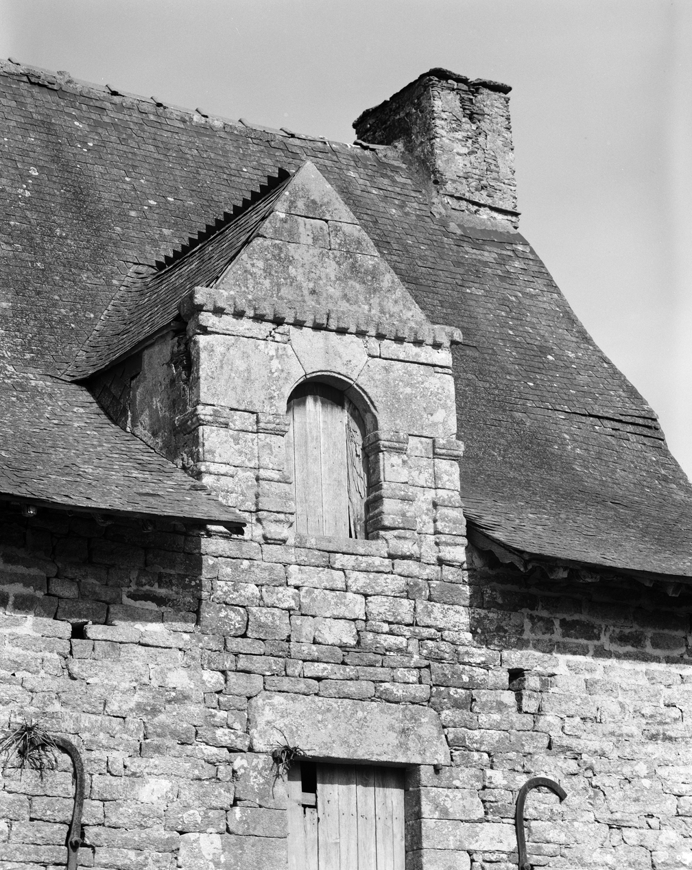 Manoir, logis, partie est, élévation sud : la lucarne de droite (état en 1988)Immatriculation