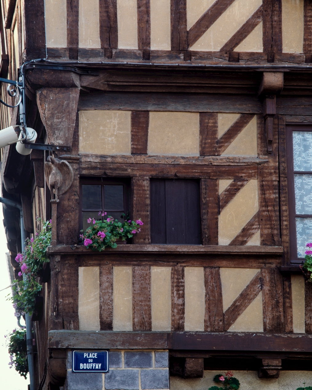 Maison : élévation sur la place, 2e niveau : les fenêtres d'angle et le pélican (état en 1988)Immatriculation