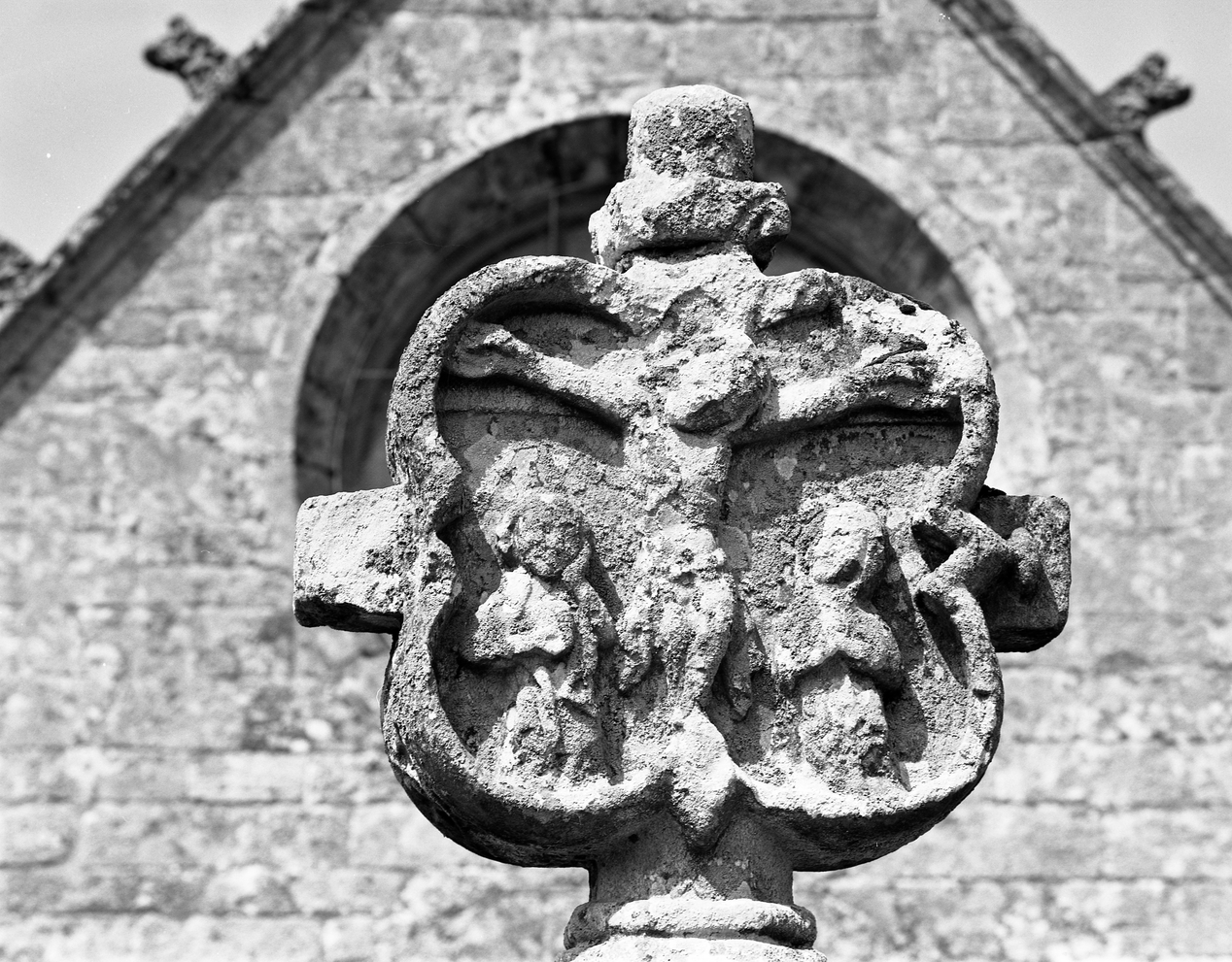 Enclos de la chapelle Notre-Dame-du-Loc, calvaire, croisillon, face ouest.Immatriculation