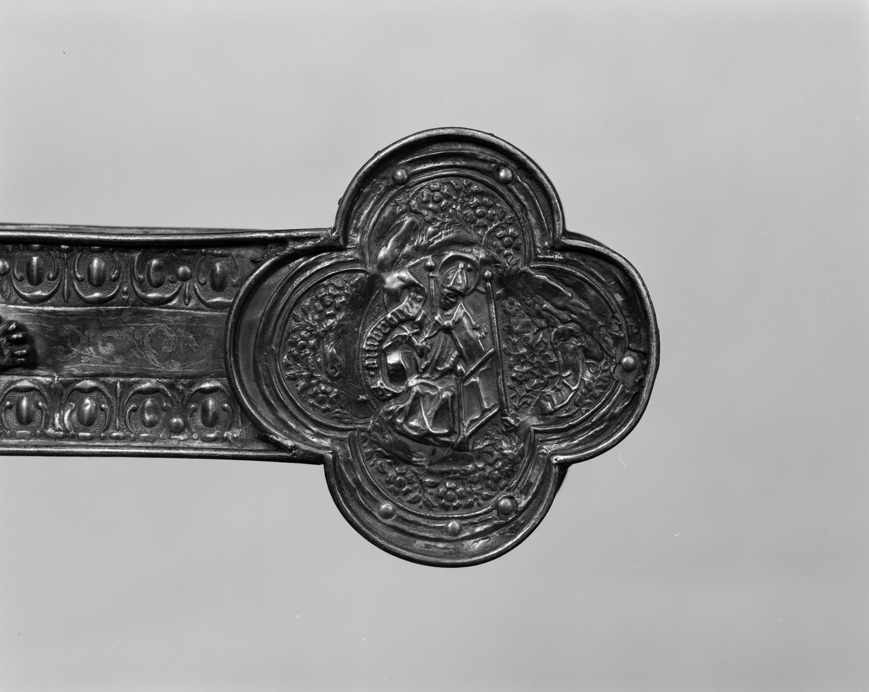 Croix de procession, face antérieure : médaillon de droiteImmatriculation