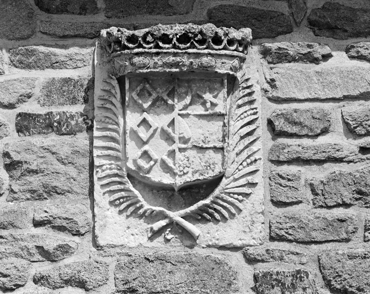 Manoir dit manoir de Kohanno Kozh, communs en alignement, mur ouest : blason.Immatriculation