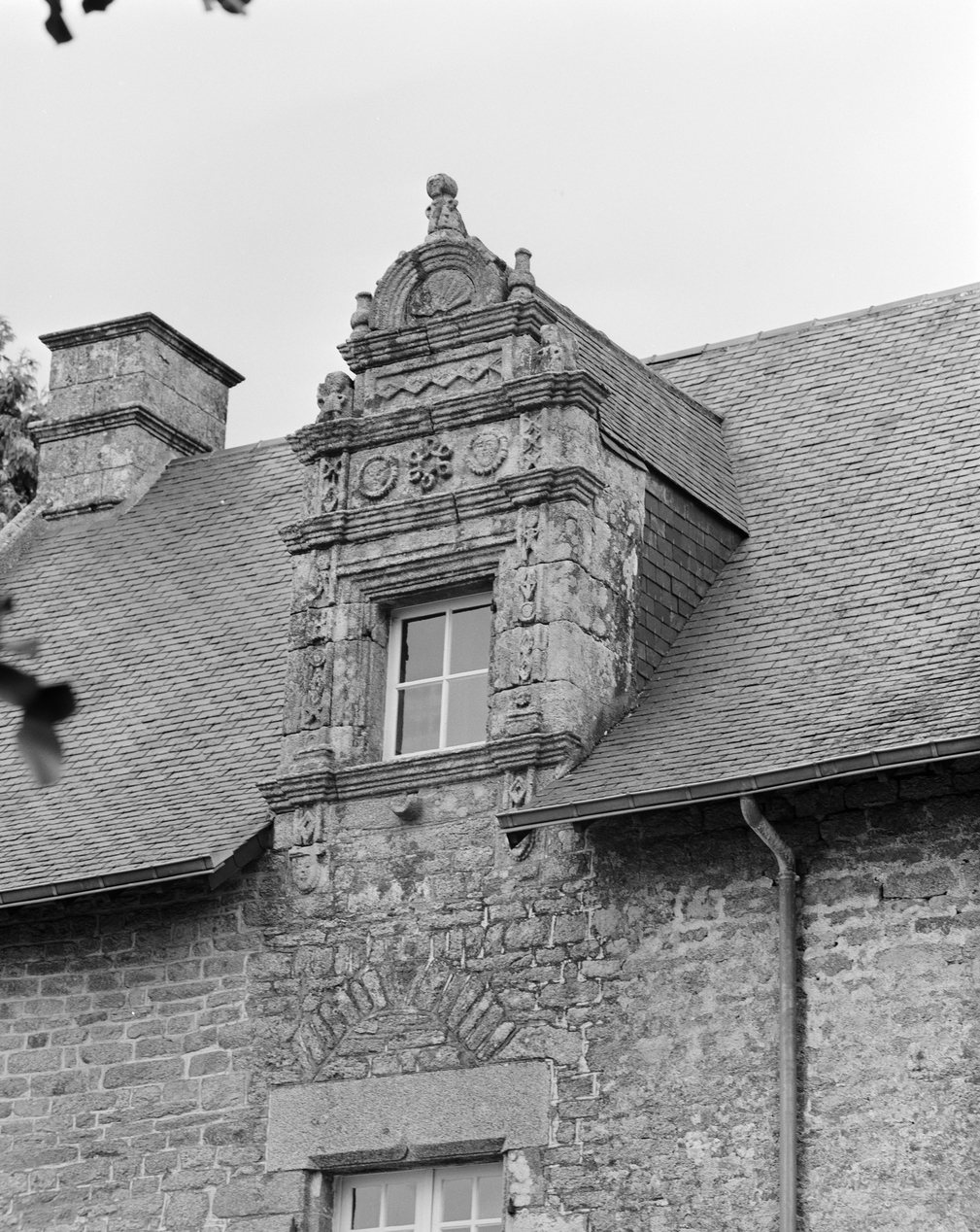 Manoir, élévation antérieure, lucarne sud.Immatriculation