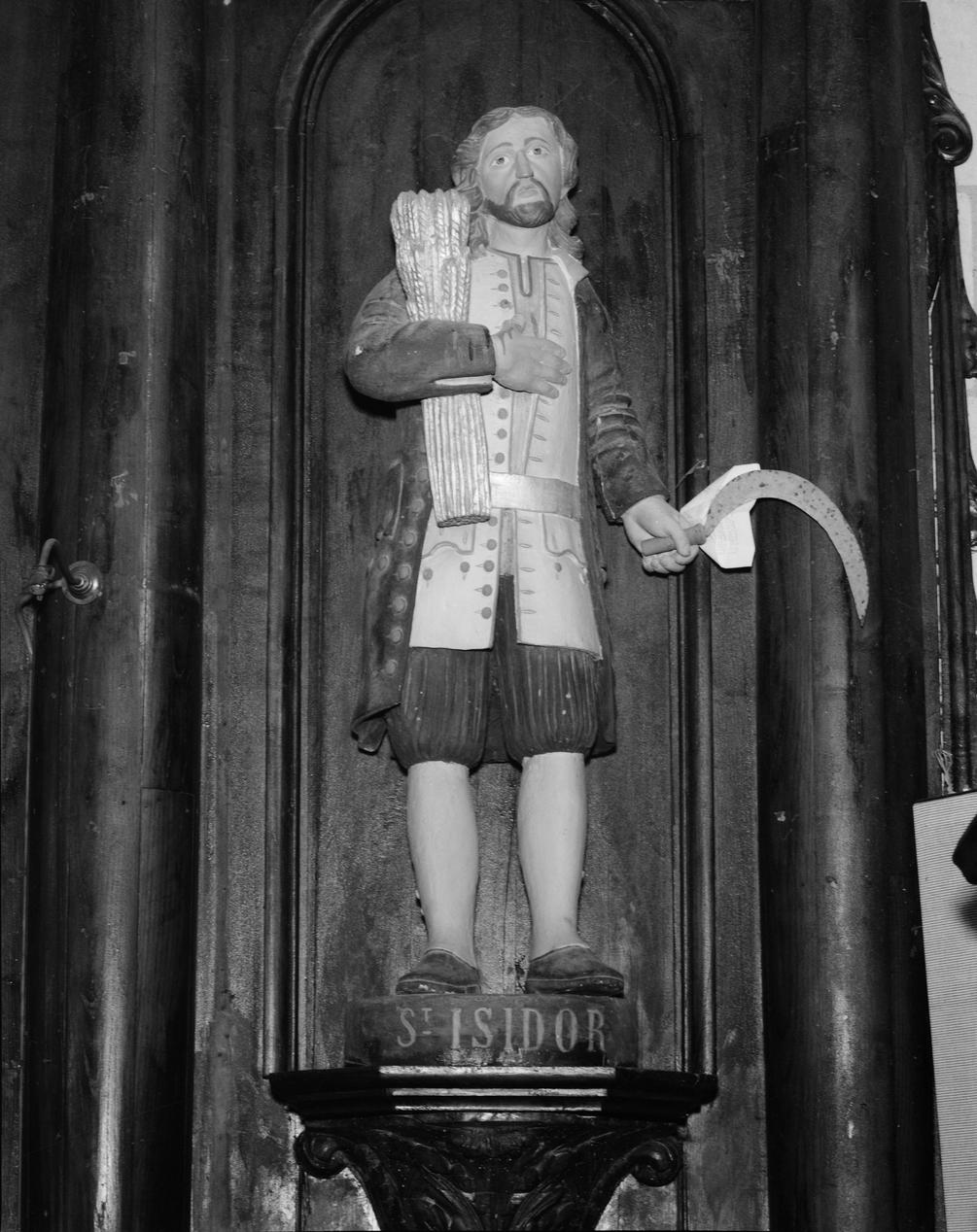 Statue (petite nature) : saint Isidore, église paroissiale Sainte-Cécile (Theix fusionnée en Theix-Noyalo en 2016),