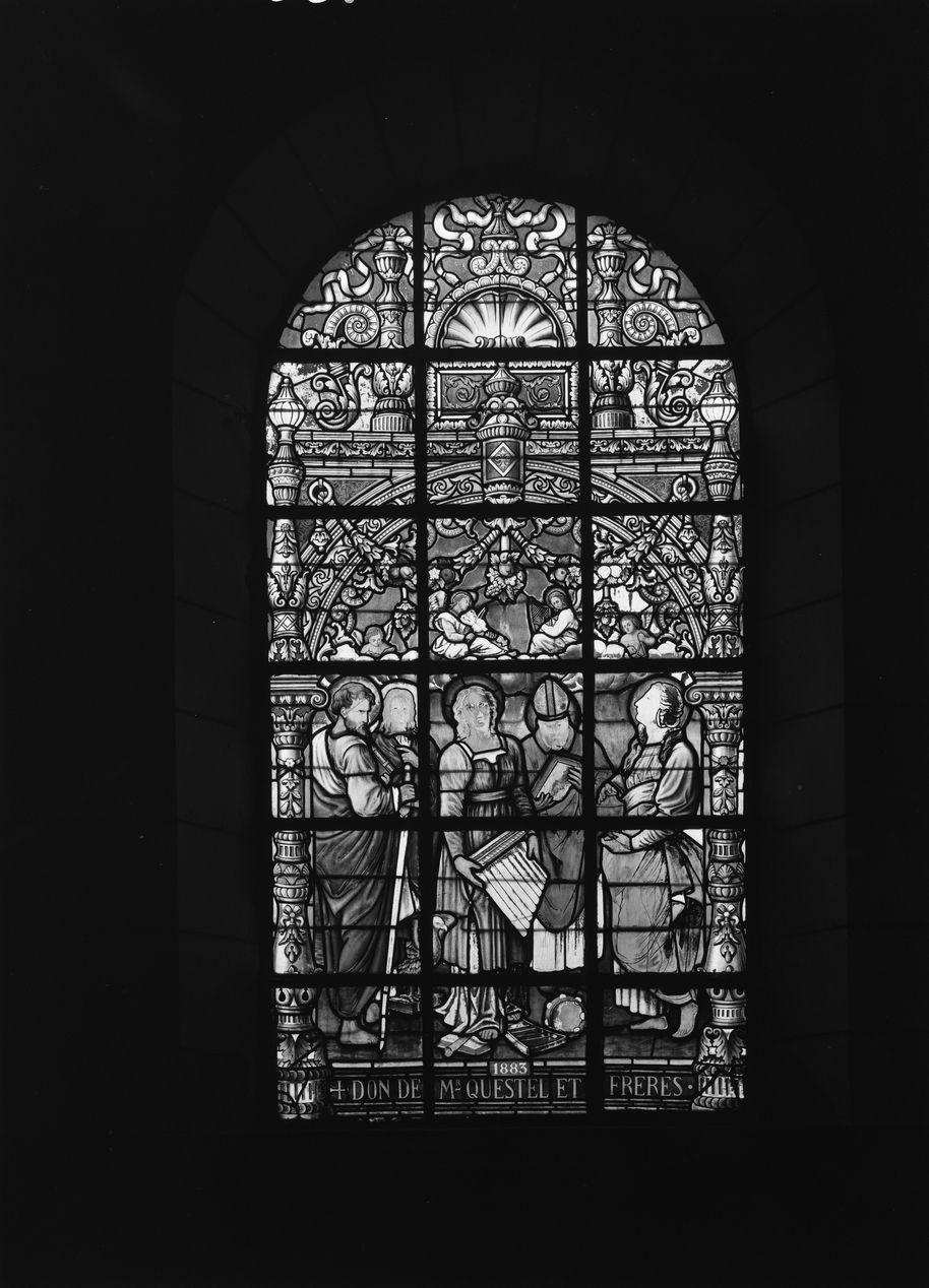 Verrière 0 (verrière hagiographique), église paroissiale Sainte-Cécile (Theix fusionnée en Theix-Noyalo en 2016),
