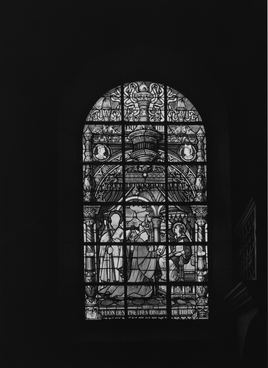 Verrière 0 (verrière hagiographique), église paroissiale Sainte-Cécile (Theix fusionnée en Theix-Noyalo en 2016),