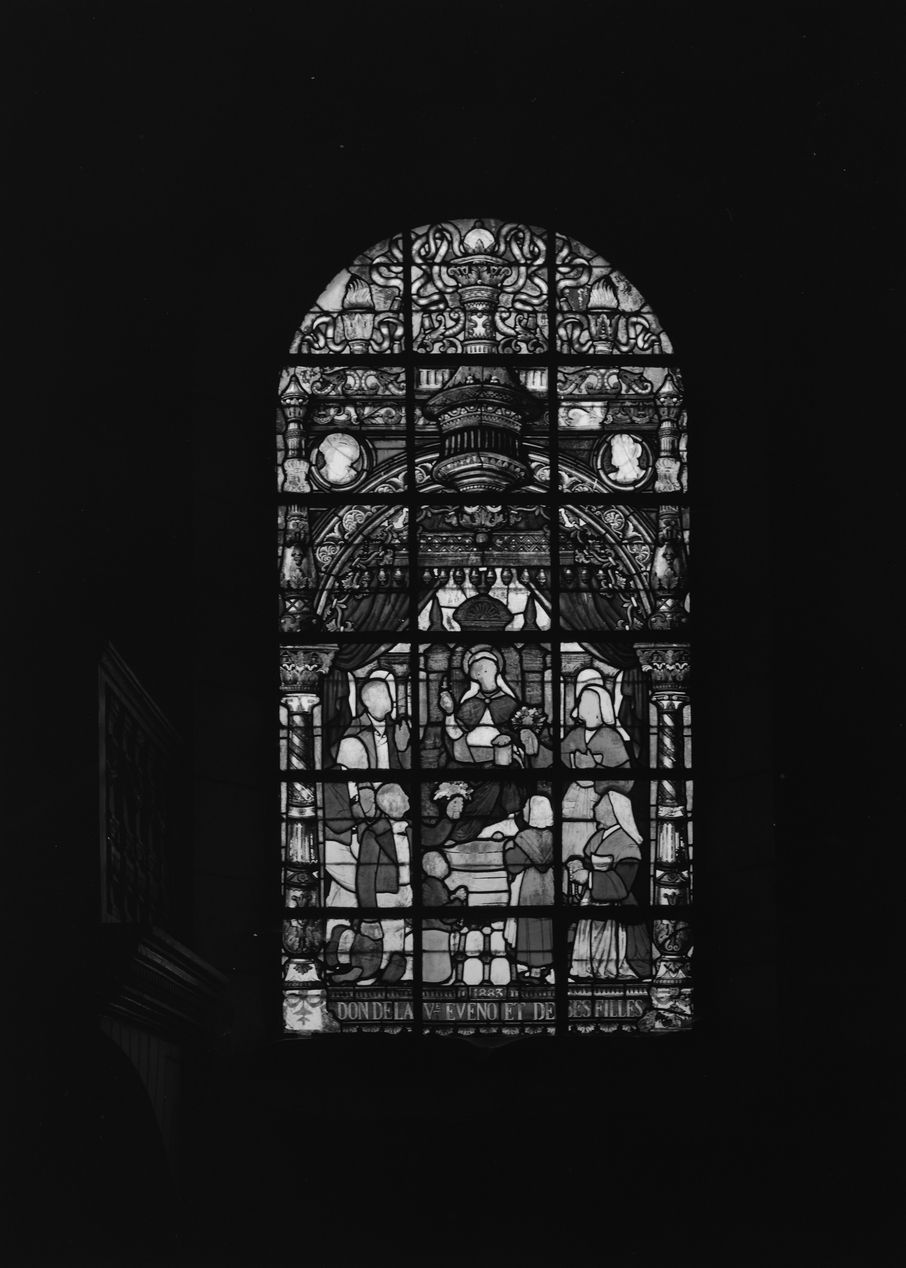 Verrière 0 (verrière hagiographique), église paroissiale Sainte-Cécile (Theix fusionnée en Theix-Noyalo en 2016),