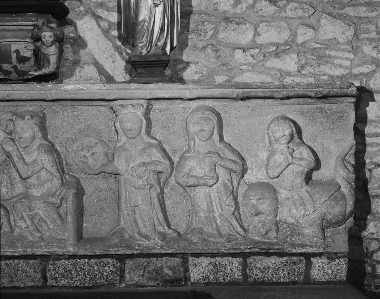 Prédelle, détail des trois saintes : Marguerite, Madeleine, Catherine.Immatriculation