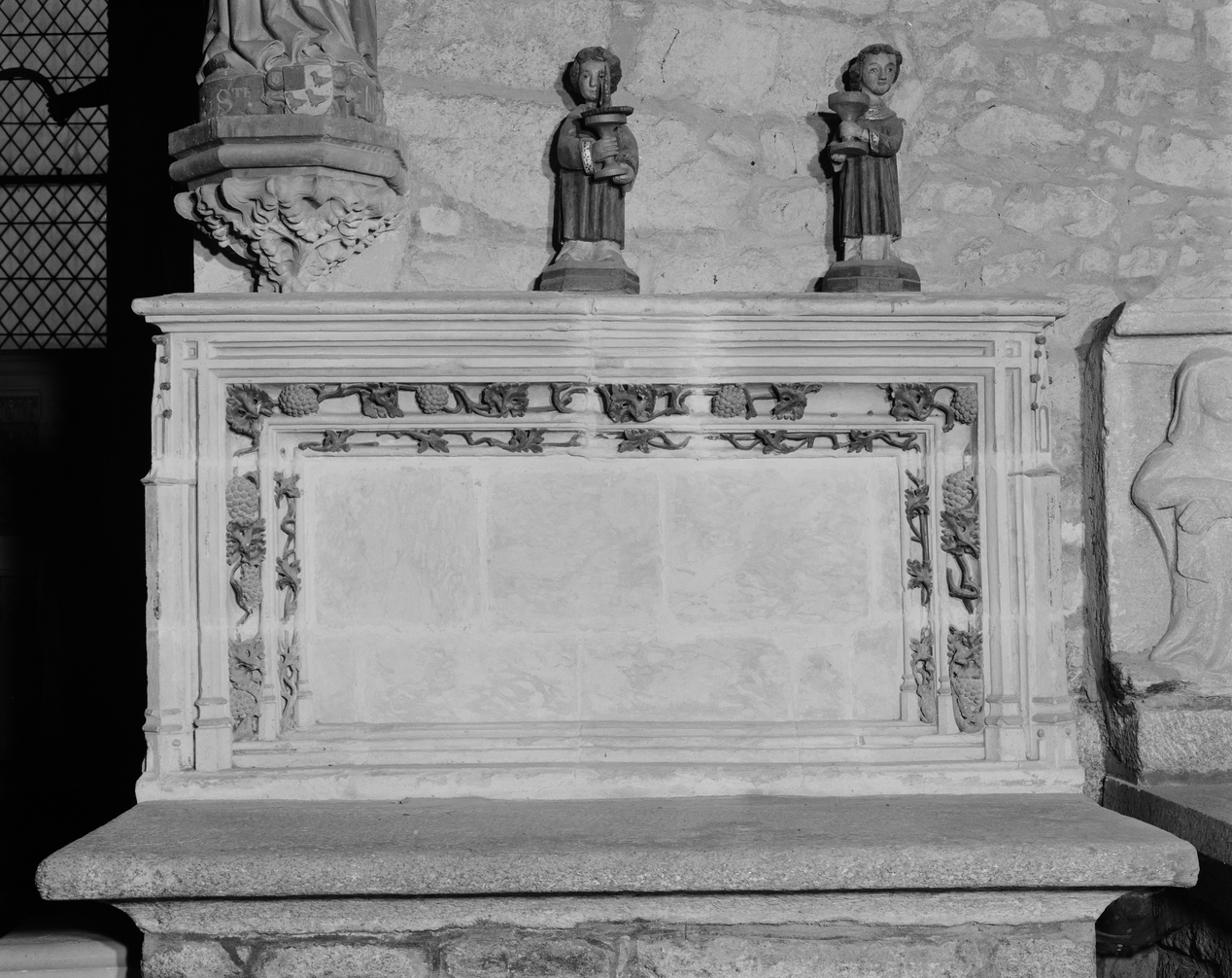 Ensemble de deux autels retables, retable sud, détail.Immatriculation
