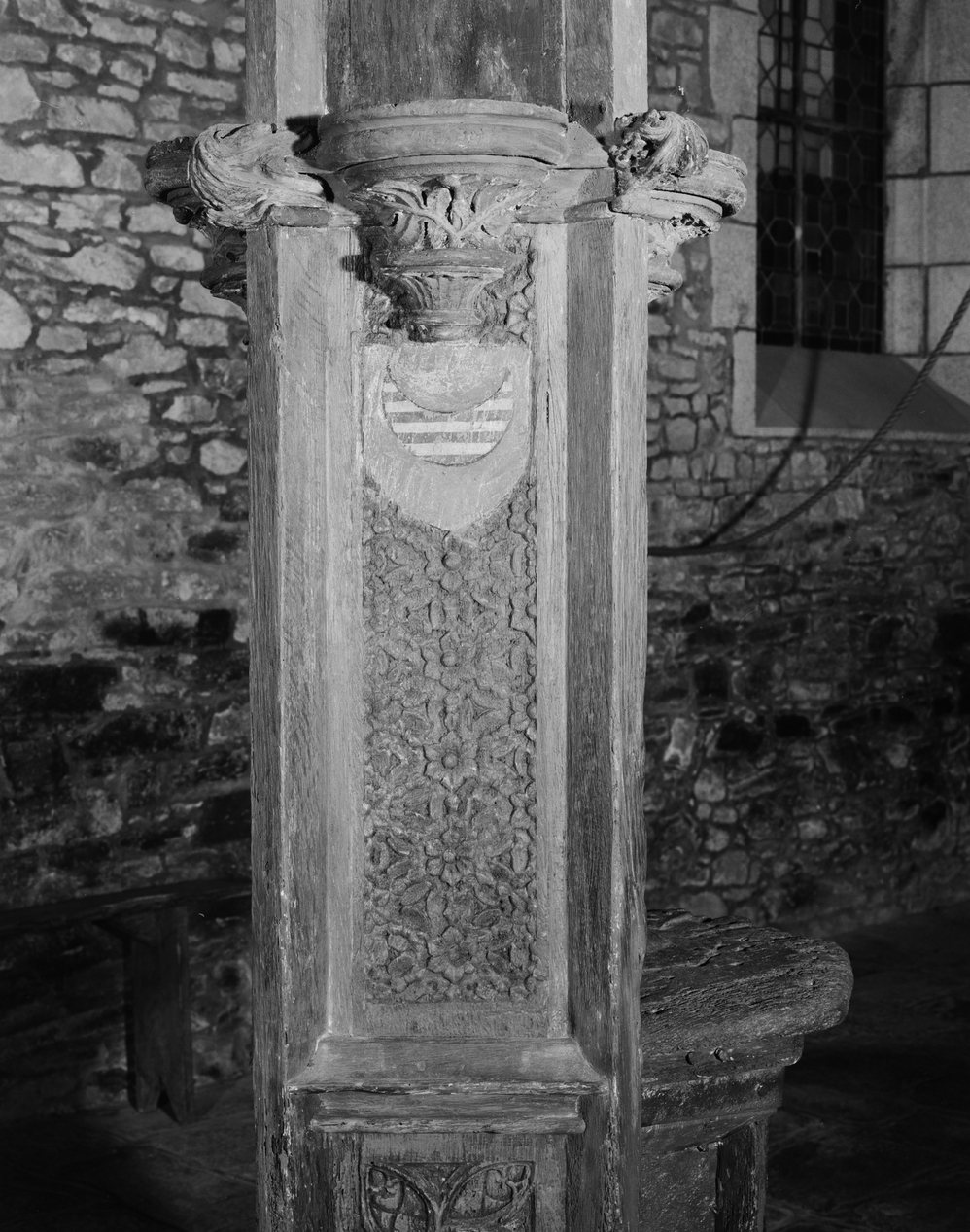 Calvaire, base du fût, blason.Immatriculation