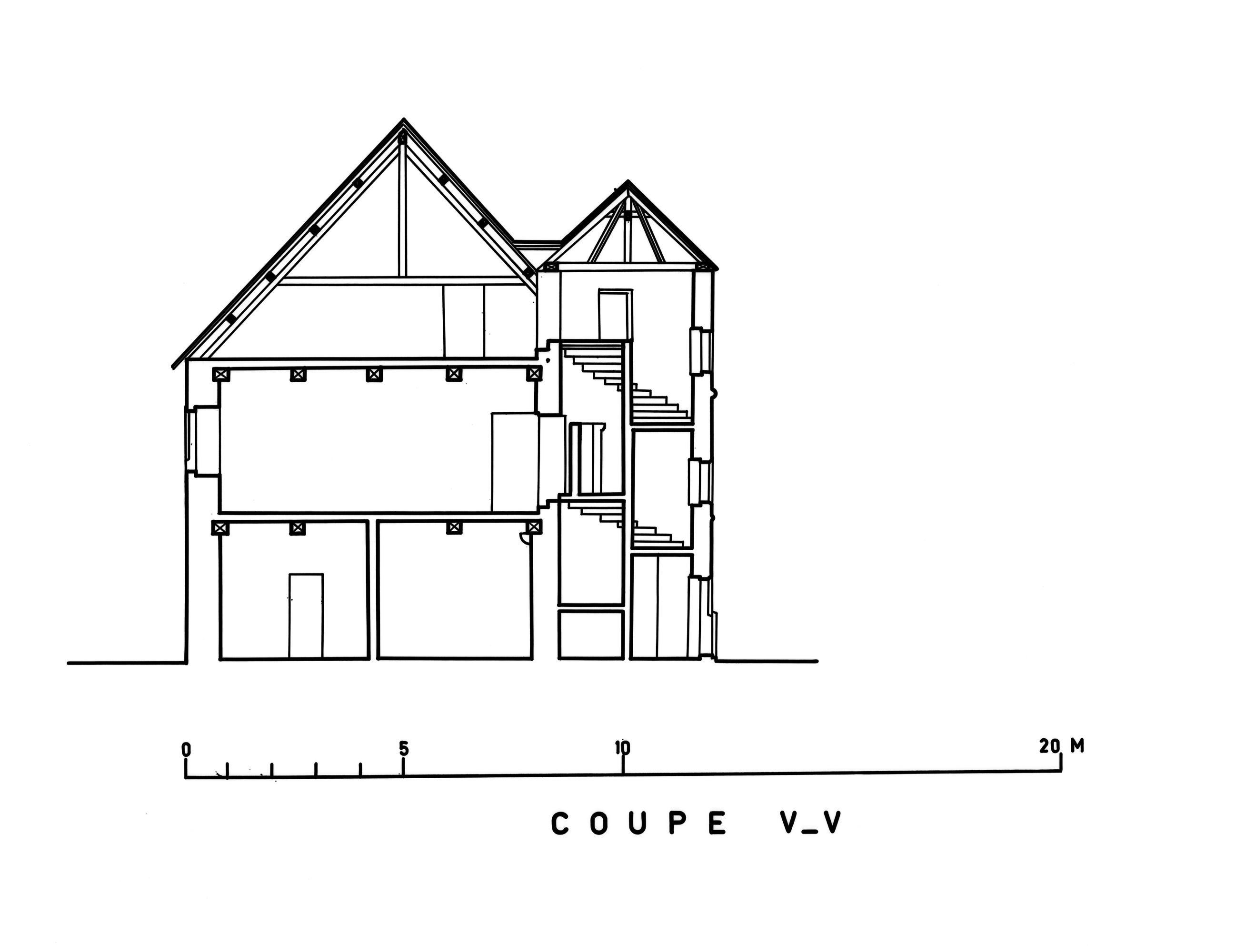 Parigné- Château des Acres- Coupe Transversale. Dessin.