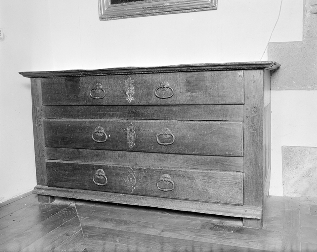 Commode à trois tiroirs, vue générale.Immatriculation
