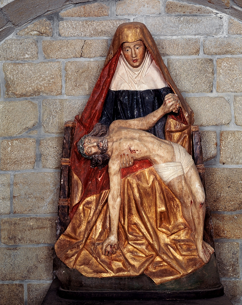 Groupe sculpté (d'applique) : Vierge de Pitié, église paroissiale Notre-Dame-de-Roscudon (Pont-Croix),