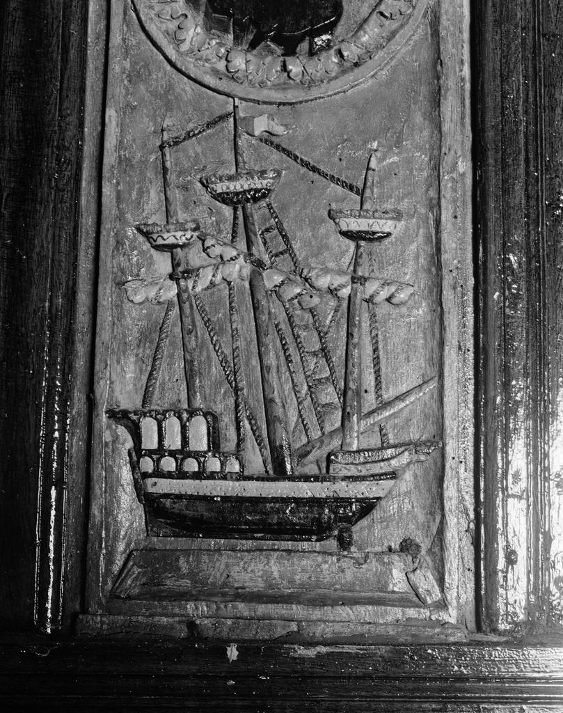 Panneau central, détail bateauImmatriculation