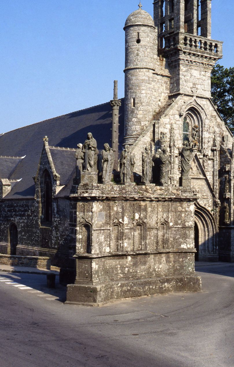 Vue générale prise de l'ouest avec église de Confort. (1989)Immatriculation