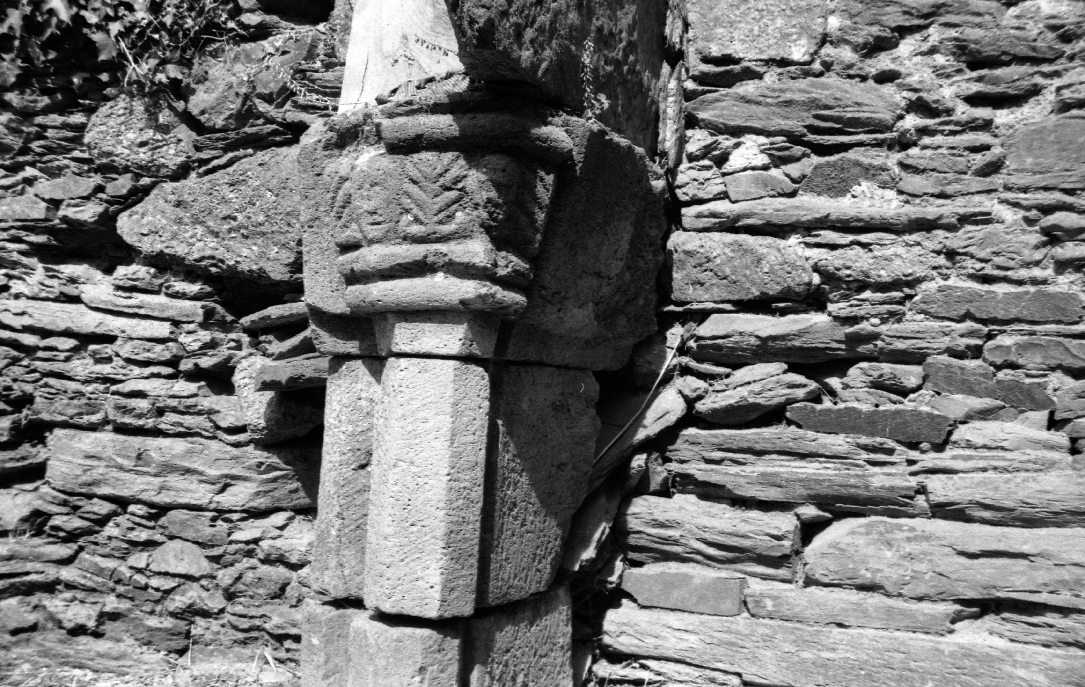 Manoir, élévation ouest : jambage de cheminée en remploi (état en 1969)Immatriculation