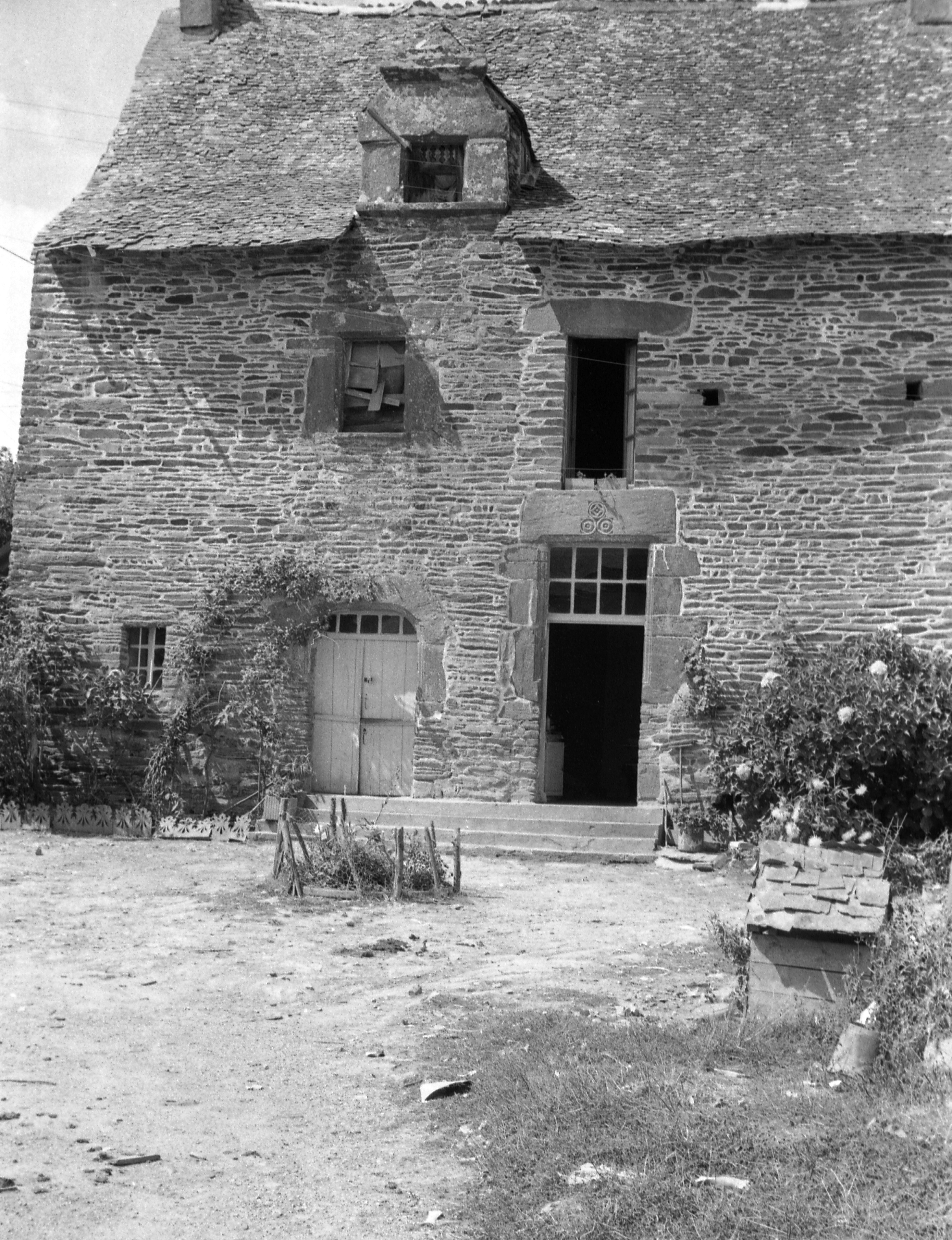 Manoir : élévation est vue du sud-est (état en 1969) ; il existe encore une lucarne dans la partie sudImmatriculation