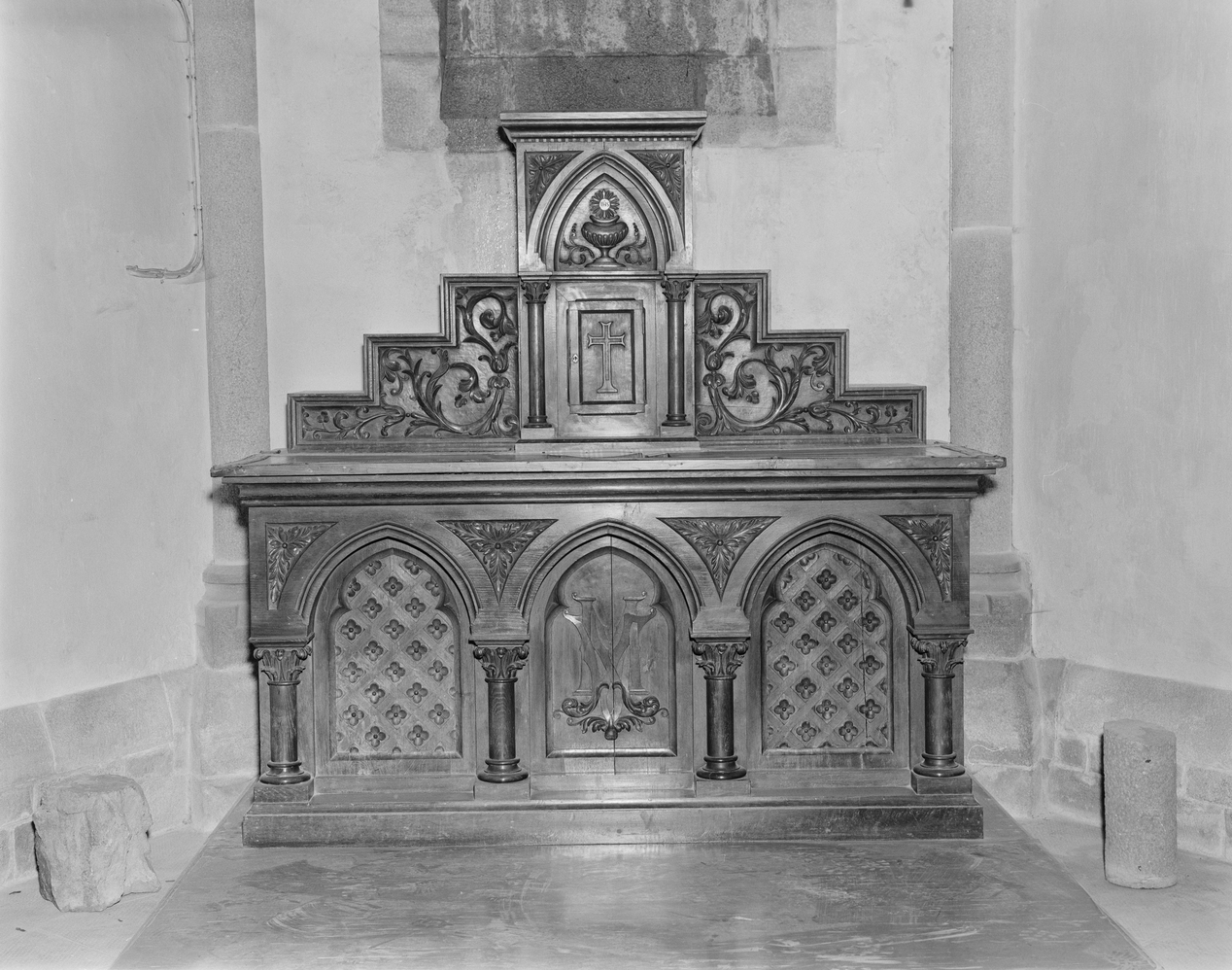 Autel, tabernacle, gradin d'autel, style néo-gothique, église paroissiale Saint-Patern (Séné),