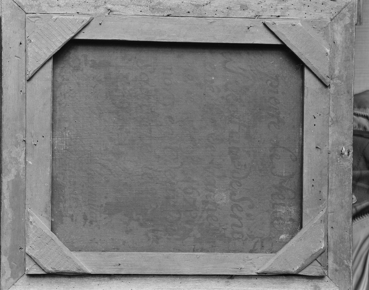 Tableau, portrait de Pierre Le Névé, revers.Immatriculation
